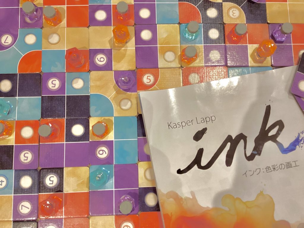 タイルを配置し、目標達成し、インク瓶を置いていくタスク達成型タイル配置ゲーム。